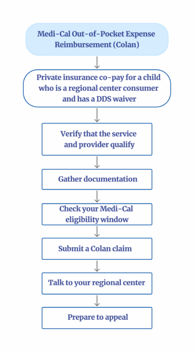 • Ask your service coordinator whether the regional center can cover that co-pay (or a portion) in “payer of last resort” fashion.